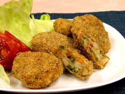 D食べやすい大きさににぎり、小麦粉、溶き卵、いりゴマの順番に衣をつける。
