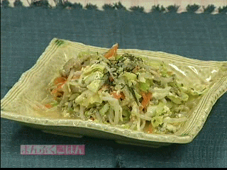 B茶葉は大さじ2杯のお湯で戻しておく。