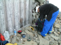 ゴツゴツした岩場で、何をしているのかな?経過時間や、スケッチを楽しんでいるようです。 |