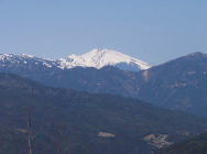 下中ほどに登山道が上へ向かって延びてい ます。結構雪があるようでしたが、登っていく 道には無くて、安全でした。 |